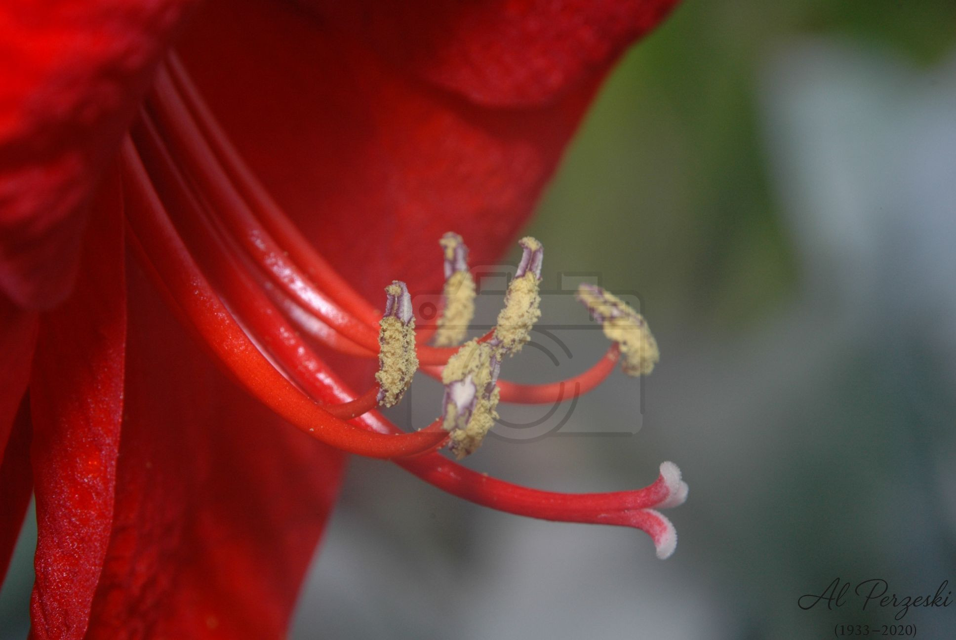 A macro exploration into the heart of a flower, revealing the intricate architecture of life’s quiet machinery. The vibrant red filaments curve with elegance while pollen-covered anthers stand like golden sentinels—fragile yet powerful, holding the promise of regeneration in silence.